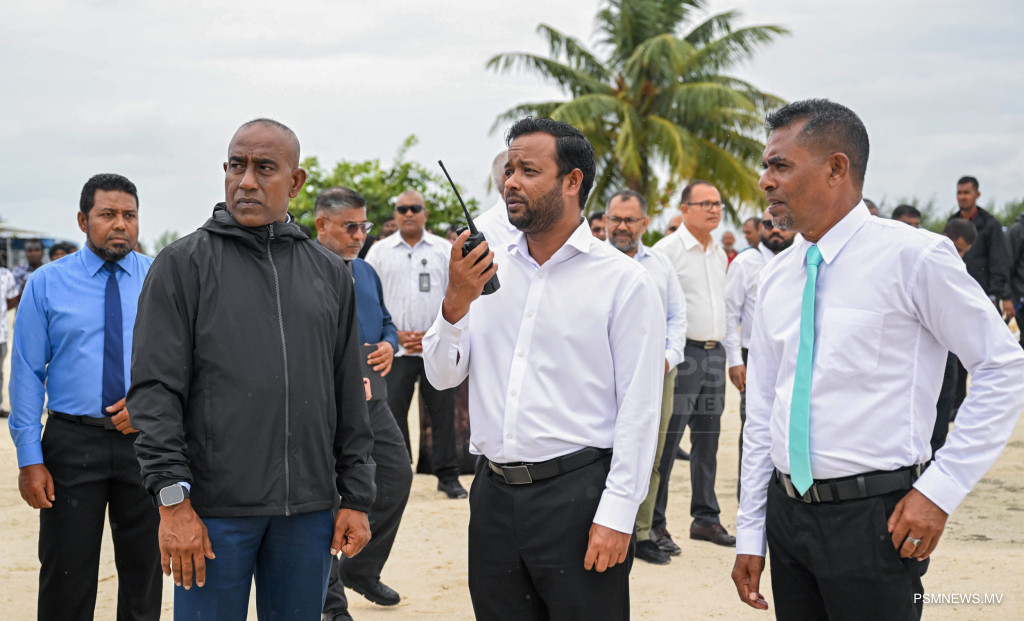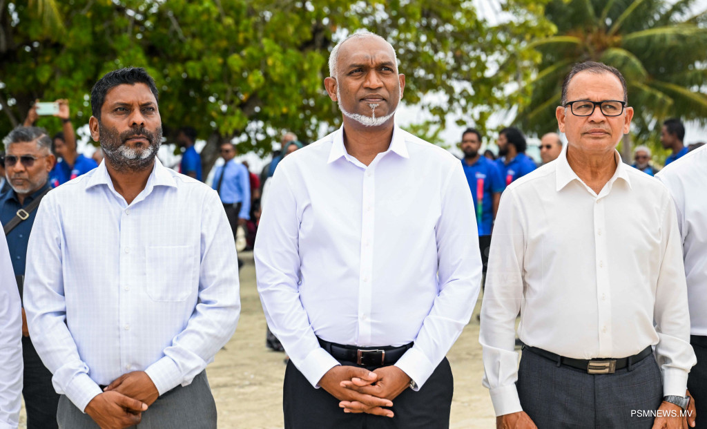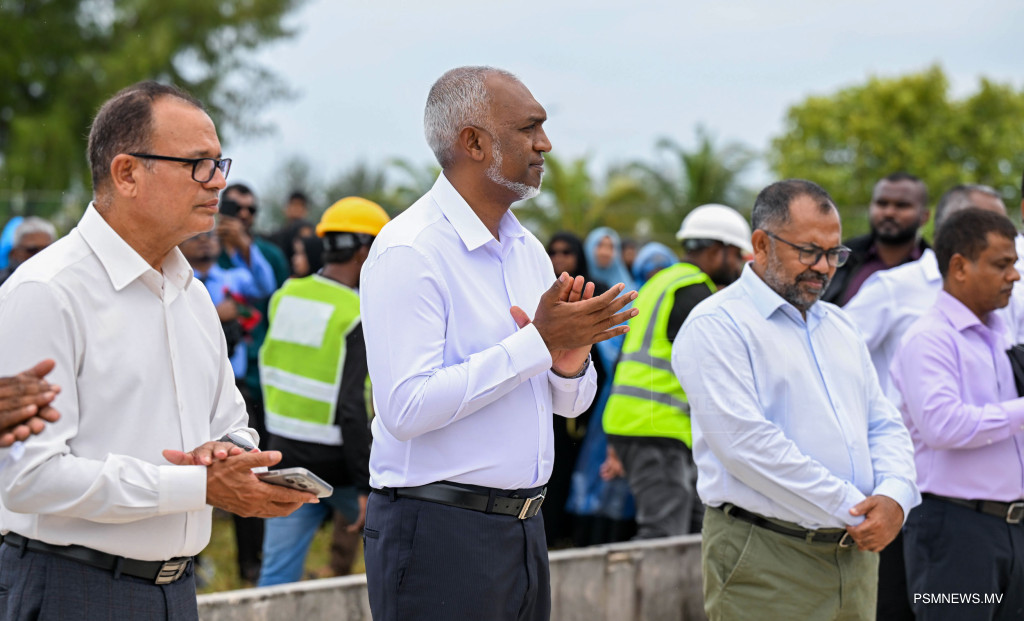 ލ. މާވަށު ގޮނޑުދޮށް ހިމާޔަތްކުރުމުގެ މަޝްރޫޢުގެ އަމަލީ މަސައްކަތް ފެށުމުގެ ރަސްމިއްޔާތުގައި ރައީސުލްޖުމްހޫރިއްޔާ ޑރ. މުޙައްމަދު މުޢިއްޒު ބައިވެރިވެވަޑައިގަންނަވަނީ / ފޮޓޯ - ރައީސް އޮފީސް