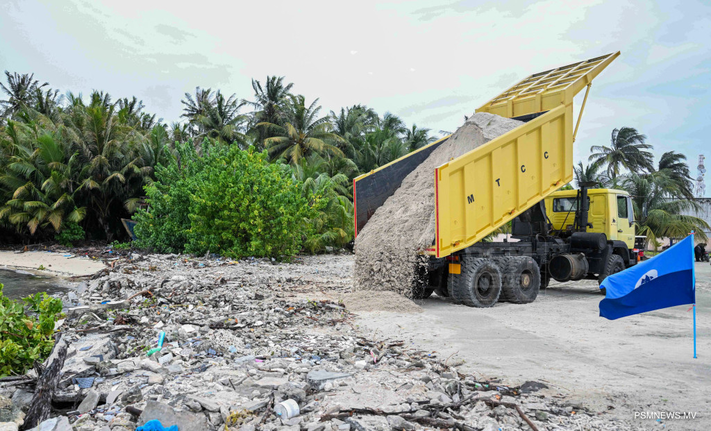 ލ. މާވަށު ގޮނޑުދޮށް ހިމާޔަތްކުރުމުގެ މަޝްރޫޢުގެ އަމަލީ މަސައްކަތް ފެށުން / ފޮޓޯ - ރައީސް އޮފީސް