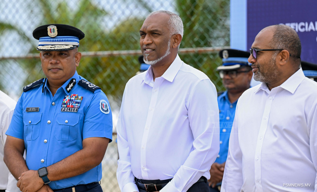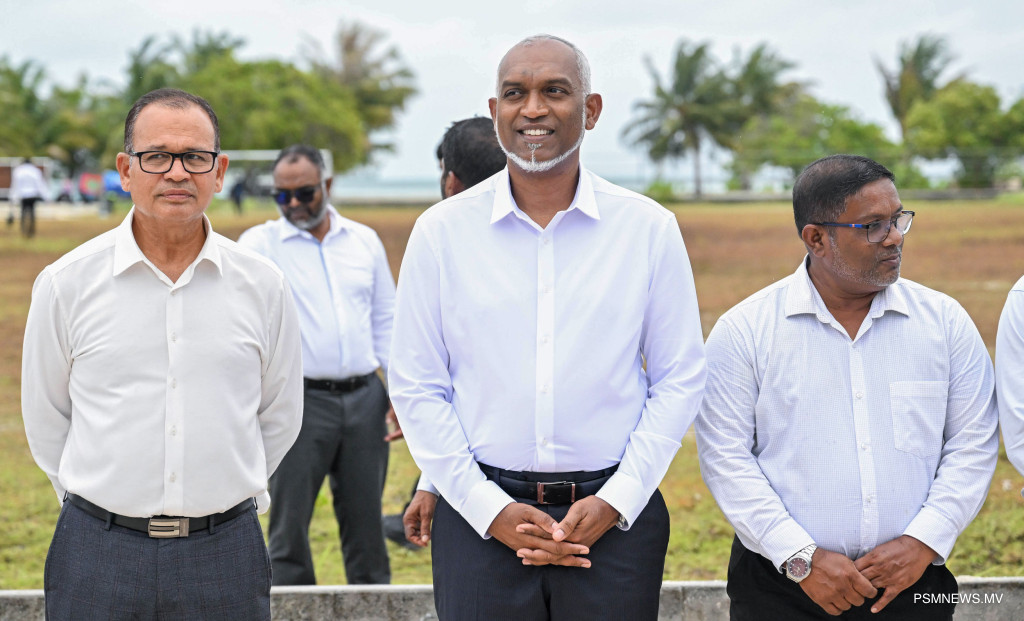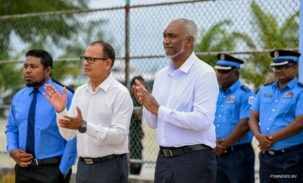 ލ. މާވަށު ފުލުހުންގެ މަރުކަޒުގެ ބިންގާ އެޅުމުގެ ރަސްމިއްޔާތުގައި ރައީސުލްޖުމްހޫރިއްޔާ ޑރ. މުޙައްމަދު މުޢިއްޒު ބައިވެރިވެވަޑައިގަންނަވަނީ / ފޮޓޯ - ރައީސް އޮފީސް