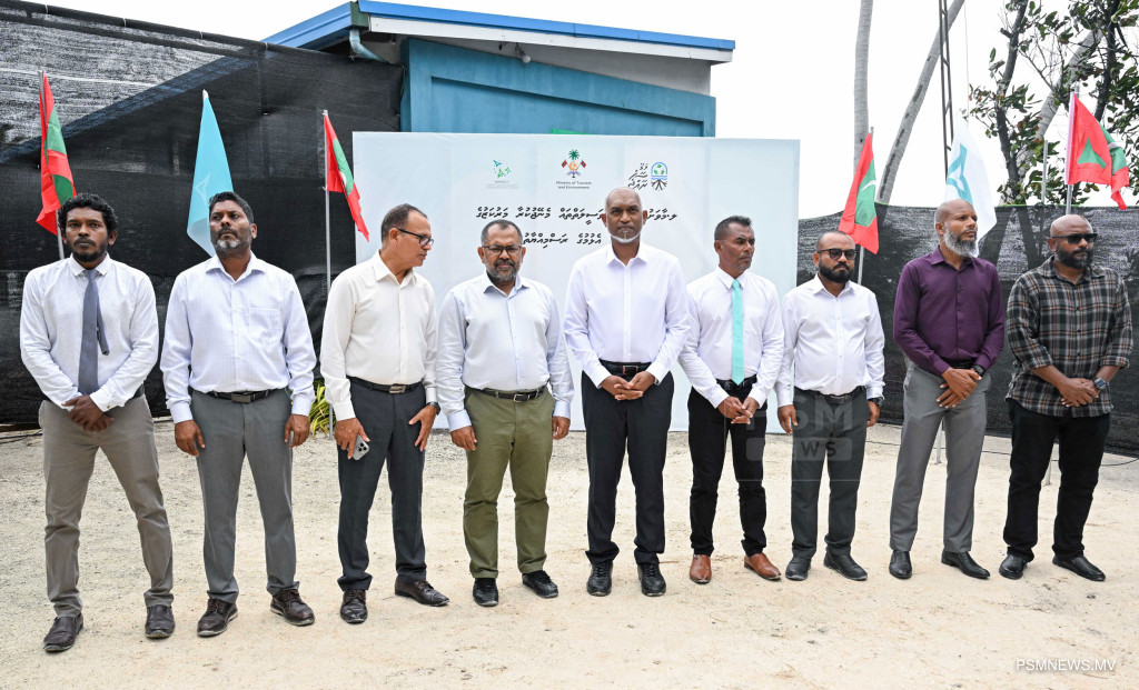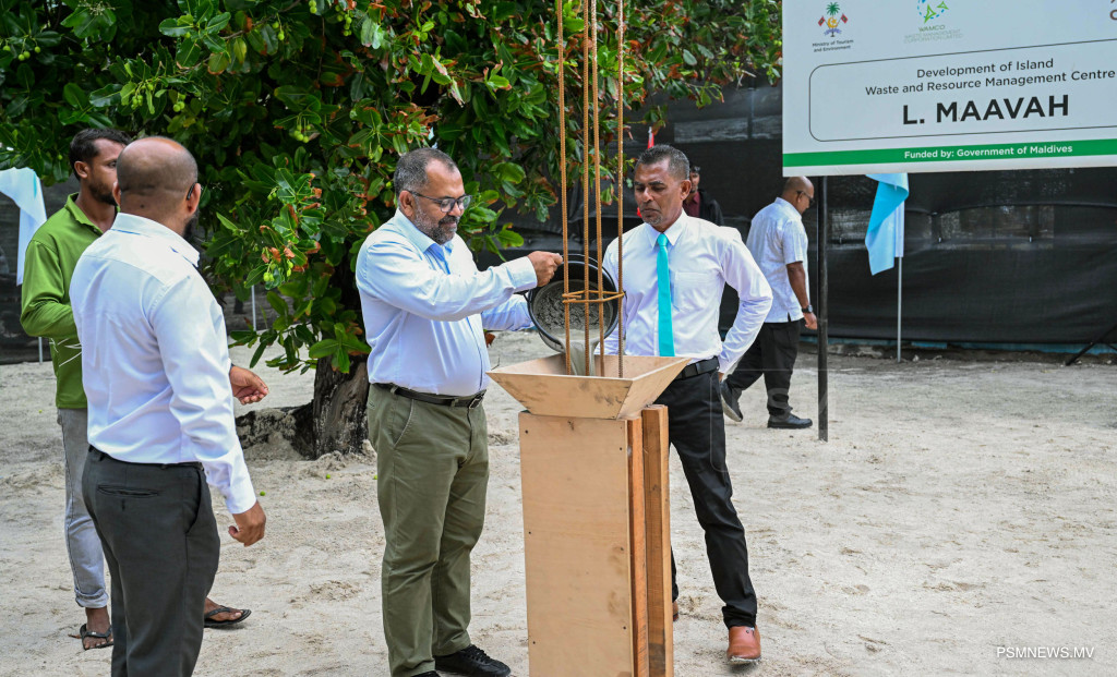 ލ. މާވަށުގައި ޤާއިމުކުރާ ކުނި މެނޭޖުކުރާ މަރުކަޒުގެ އަމަލީ މަސައްކަތް ފެށުމުގެ ރަސްމިއްޔާތުގައި ރައީސުލްޖުމްހޫރިއްޔާ ޑރ. މުޙައްމަދު މުޢިއްޒު ބައިވެރިވެވަޑައިގަންނަވަނީ / ފޮޓޯ - ރައީސް އޮފީސް