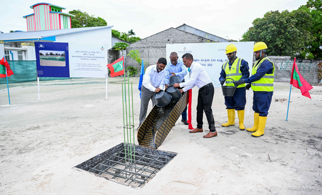 ލ. މާވަށު ފިޓްނަސް އެންޑް ރެކްރިއޭޝަން ސެންޓަރުގެ ބިންގާ ކުޅިވަރާއި ހަށިހެޔޮކަމާ ބެހޭ ވަޒީރު ޢަބްދުالله ރާފިޢު އަޅުއްވައިދެއްވަނީ / ފޮޓޯ - ރައީސް އޮފީސް