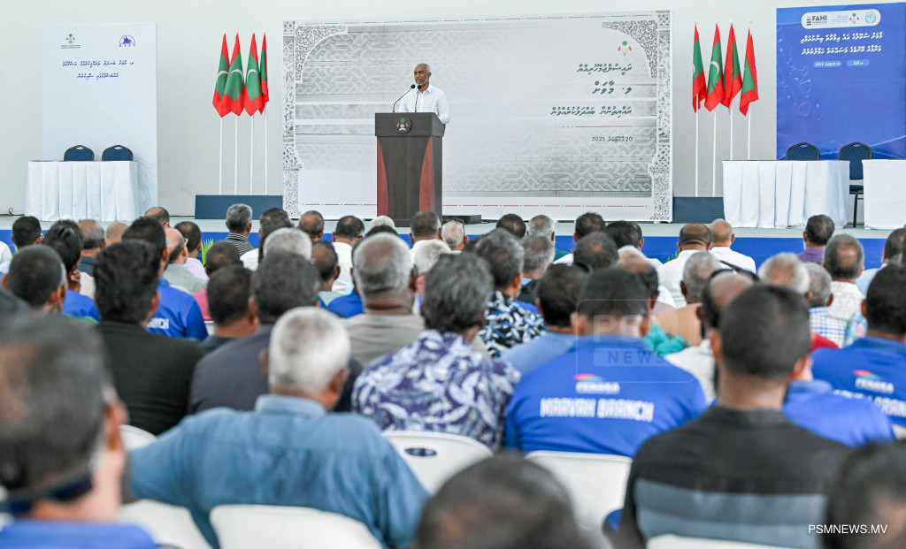 ރައީސުލްޖުމްހޫރިއްޔާ ޑރ. މުޙައްމަދު މުޢިއްޒު ލ. މާވަށު ރައްޔިތުންނާއި ބައްދަލުކުރެއްވުމަށް ބޭއްވި ޖަލްސާގެ ތެރެއިން / ފޮޓޯ - ރައީސް އޮފީސް