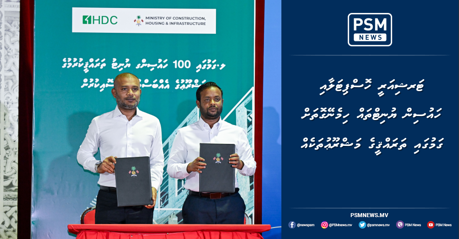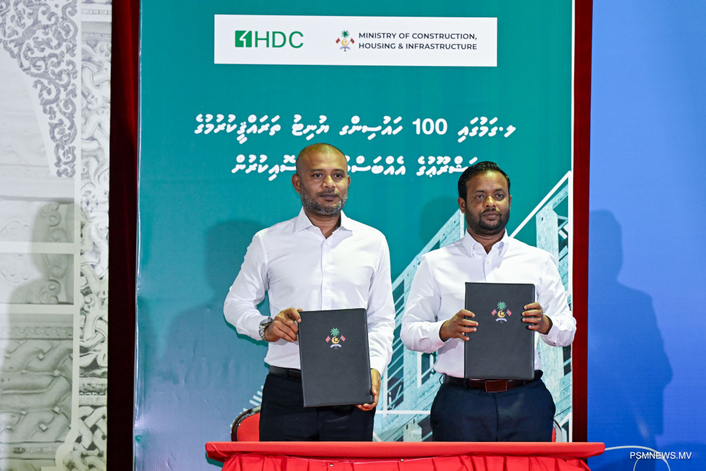 ގަމުގައި އަަލަށް އިމާރާތްކުރާ 100 ހައުސިން ޔުނިޓް ޤާއިމްކުރުމުގެ މަޝްރޫޢު ހައުސިން ޑިވެލޮޕްމެންޓް ކޯޕަރޭޝަން އެޗްޑީސީއާ ވަނީ ޙަވާލުކޮށްފައެވެ. މި އެއްބަސްވުމުގައި ސަރުކާރުގެ ފަރާތުން ސޮއިކުރެއްވީ އިމާރާތްކުރުމާއި ގެދޮރުވެރިކަމާއި ބިނާރާބެހޭ ވަޒީރު ޑރ.ޢަބްދުﷲ މުއްތަލިބާއި ހައުސިން ޑިވެލޮޕްމެންޓް ކޯޕަރޭޝަންގެ ޑެޕިއުޓީ މެނޭޖިން ޑިރެކްޓަރ މުޙައްމަދު އަސްބާހް ޢަލީ ނަސީރެވެ.