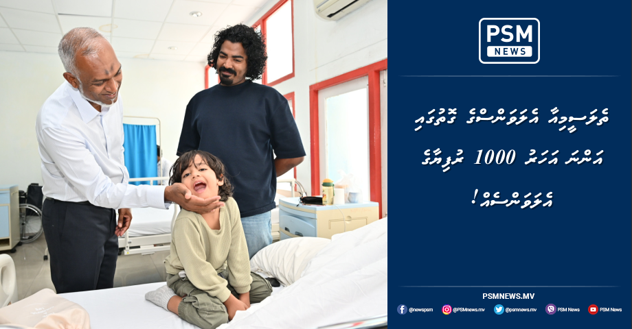 ތެލަސީމިއާ އެލަވަންސްގެ ގޮތުގައި އަންނަ އަހަރު 1000 ރުފިޔާގެ އެލަވަންސެއް ދޭން ފަށާނެކަމަށް ރައީސުލްޖުމްހޫރިއްޔާ ޑރ. މުޙައްމަދު މުޢިއްޒު ވިދާޅުވެއްޖެއެވެ.
