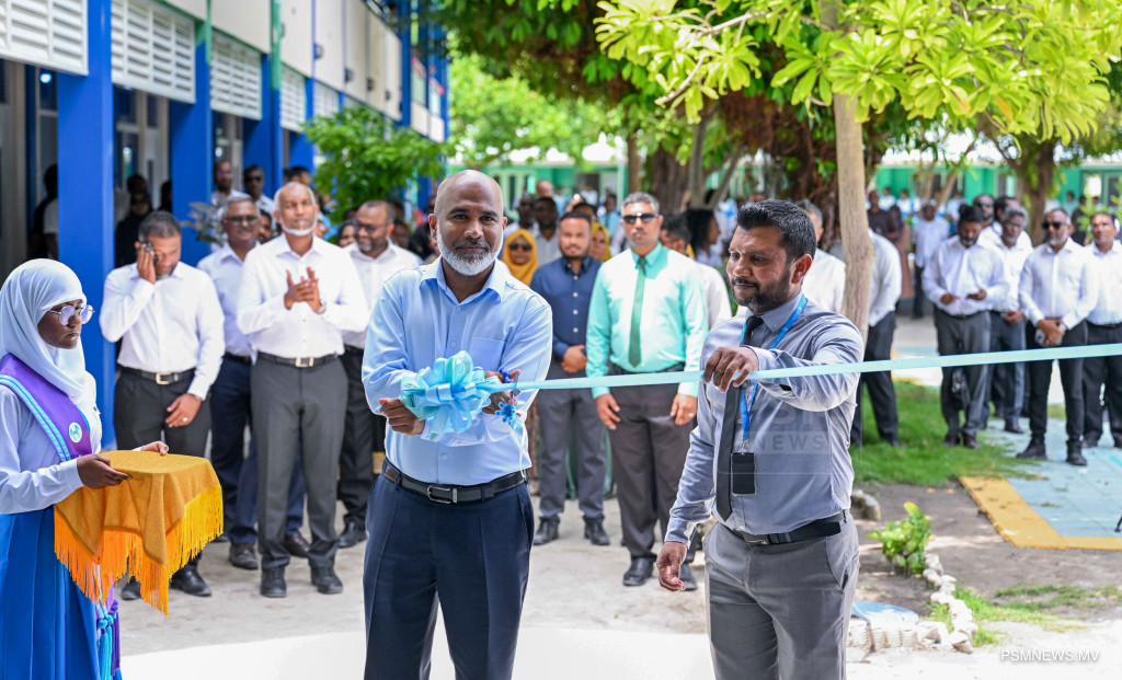 ޅ. ކުރެންދޫ ސްކޫލްގެ މަލްޓިޕާޕަސް ހޯލް ތަޢުލީމީ ވަޒީރު އިސްމާޢީލް ޝަފީޢު ހުޅުވައިދެއްވަނީ / ފޮޓޯ - ރައީސް އޮފީސް
