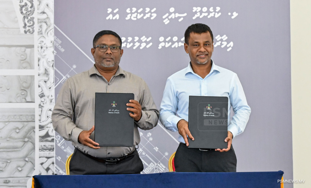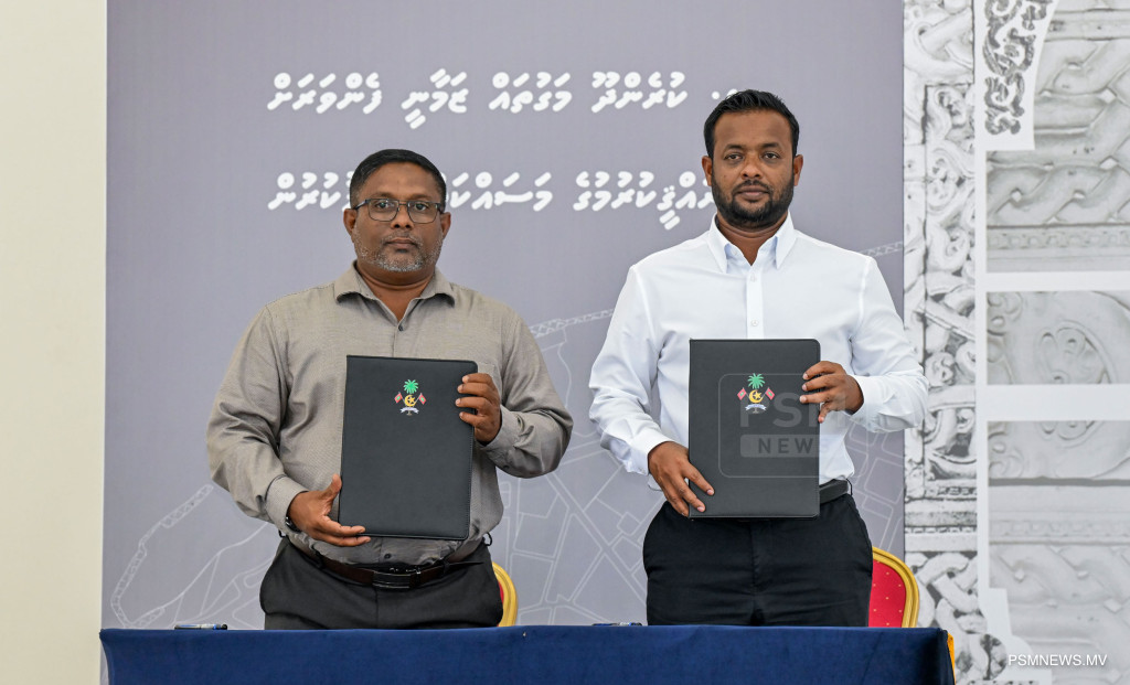 ޅ. ކުރެންދޫ މަގުތައް ޒަމާނީ ފެންވަރަށް ތަރައްޤީކުރުމުގެ މަސައްކަތް ހަވާލުކުރުމުގެ އެއްބަސްވުމުގައި ސޮއިކުރެއްވުން / ފޮޓޯ - ރައީސް އޮފީސް