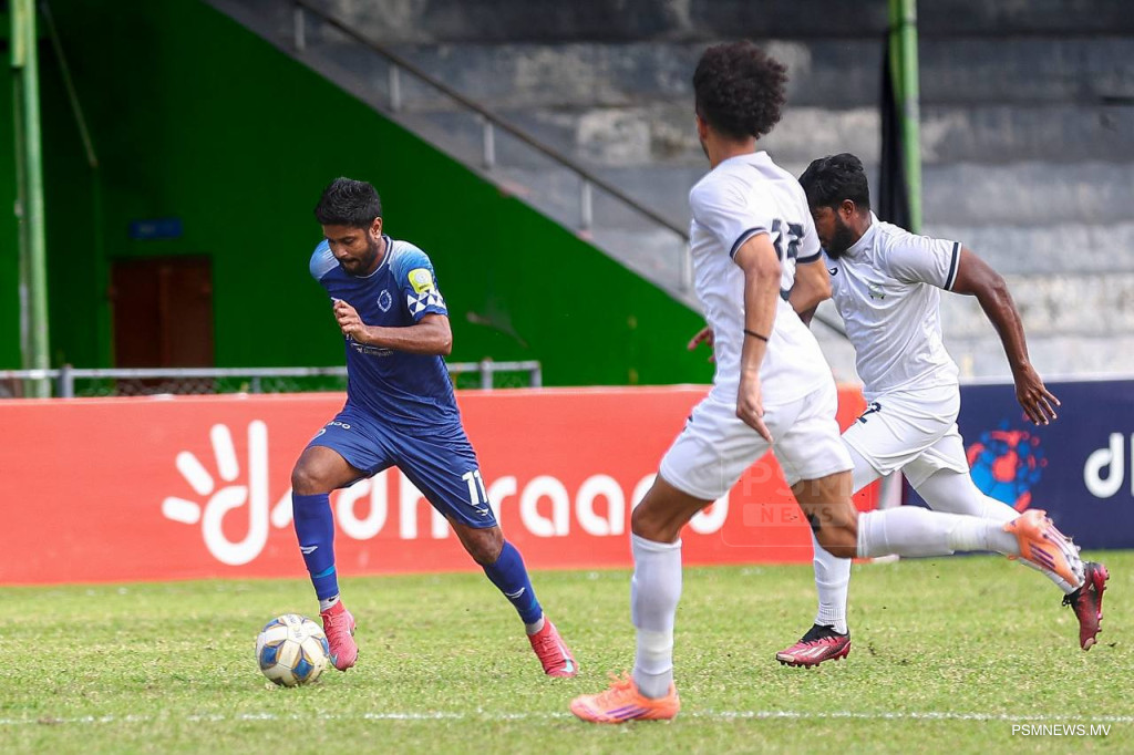 ގައުމީ ފުޓްބޯޅަ ދަނޑުގައި ކުޅުނު މެޗުގެ ފުރަތަމަ މިނިޓުގައި ނިއުގެ ކެޕްޓަން އަލީ ފާސިރު އޭރިޔާ ތެރެއިން ފޮނުވާލި ބޯޅައެއް ގްރީންގެ ކީޕަރު ވަނީ ދިފާއުކޮއްފައެވެ. އޭގެ ހަ މިނިޓުފަހުން ނިއުގެ ހަސަން ރާއިފް އަހުމަދު އޭރިޔާ ތެރެއިން ފޮނުވާލި ބޯޅައެއް ވަނީ ގޯލާ އަމާޒު ނުވެފައެވެ.