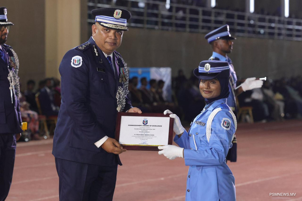 ފުލުހުންގެ ތަމްރީންކޯސް ނިންމުމަށްފަހު ނިކުމެވެނީ ޝަރަފްވެރި ޤައުމީ ޚިދުމަތަކަށްކަމަށާއި، އެންމެ އިސްކަމެއް ދޭންވާނީ ރައްޔިތުންގެ ސަލާމަތާއި ރައްކާތެރިކަން ކަށަވަރުކުރުމަށްކަމަށް ކޮމިޝަނަރ އޮފް ޕޮލިސް އިސްމާއިލް ނަވީން ވިދާޅުވެއްޖެއެވެ.