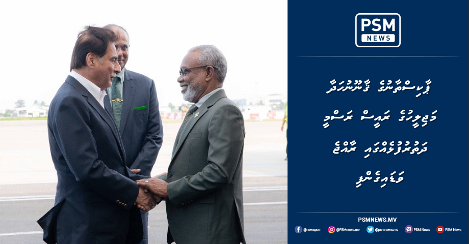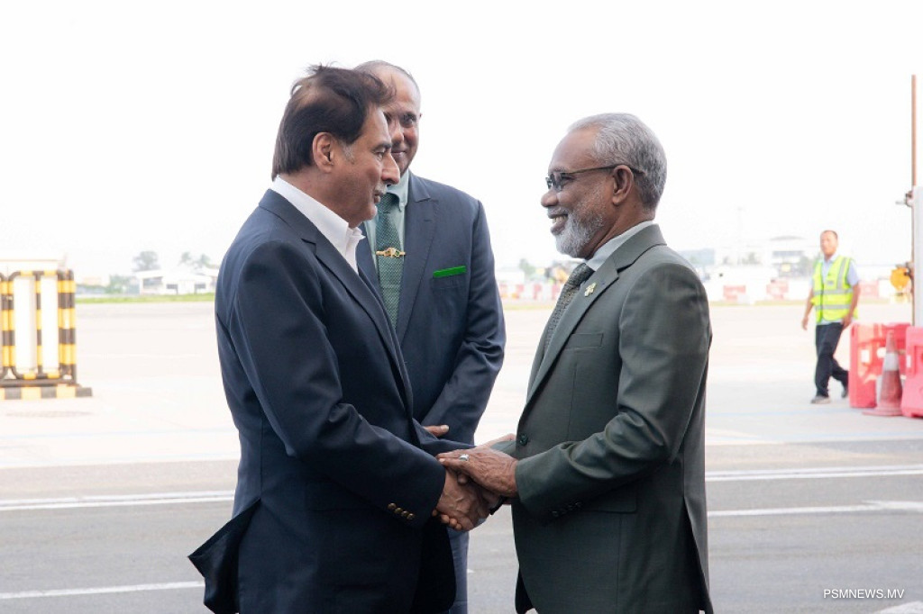 ޕާކިސްތާނުގެ ޤާނޫނު ހަދާ މަޖިލީހުގެ ރައީސް، ސަރްދާރް އަޔާޒް ޞާދިޤަށް ވެލާނާ އިންޓަރ ނޭޝަނަލް އެއަރޕޯޓުން މަރުޙަބާ ވިދާޅުވީ ރައްޔިތުންގެ މަޖިލީހުގެ ރައީސް ޢަބްދުއްރަޙީމް ޢަބްދުﷲއެވެ. މިއީ އެމަނިކުފާނުގެ ދަޢުވަތަކަށް ޕާކިސްތާނުގެ ޤާނޫނު ހަދާ މަޖިލީހުގެ ރައީސް ކުރައްވާ 3 ދުވަހުގެ ދަތުރުފުޅެކެވެ.