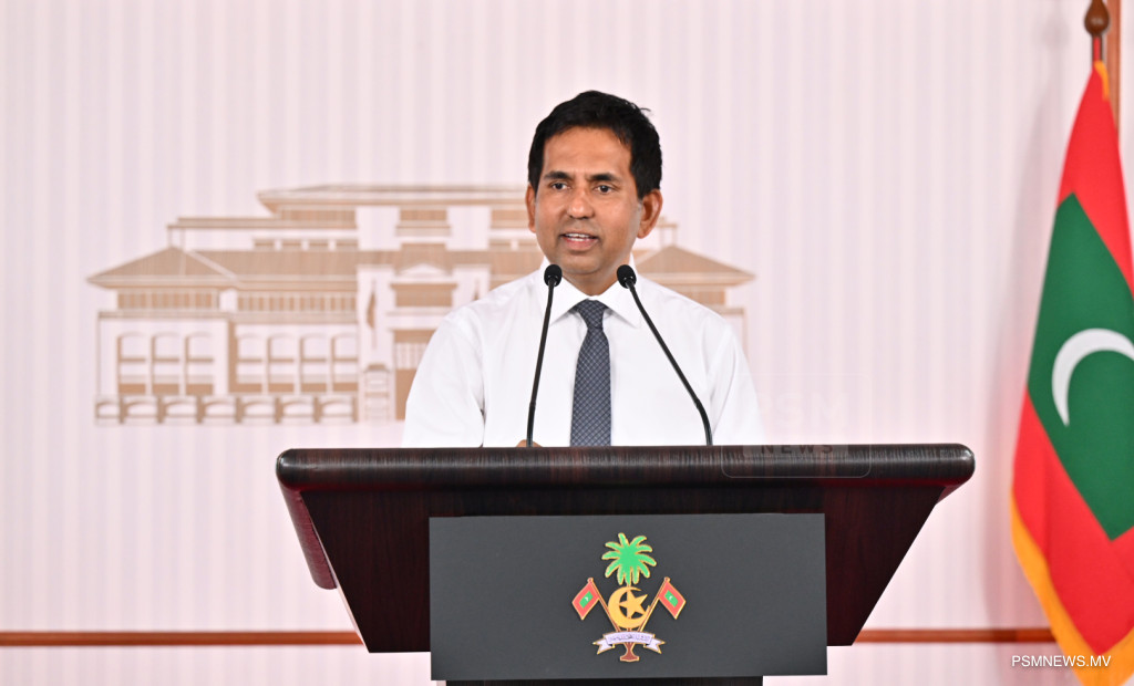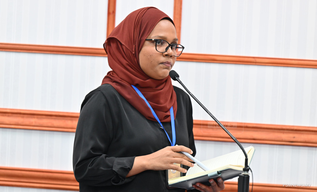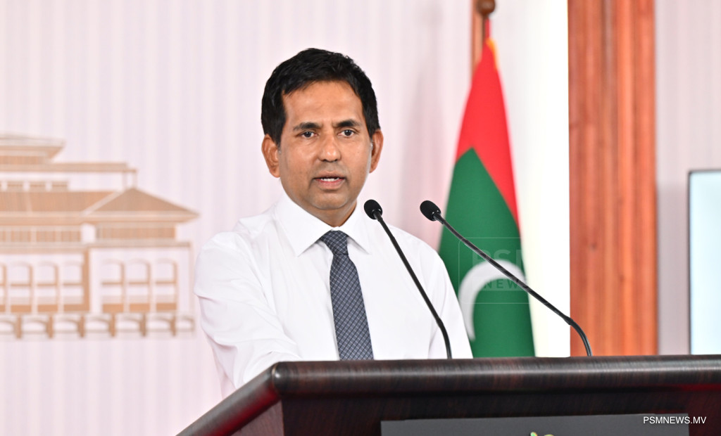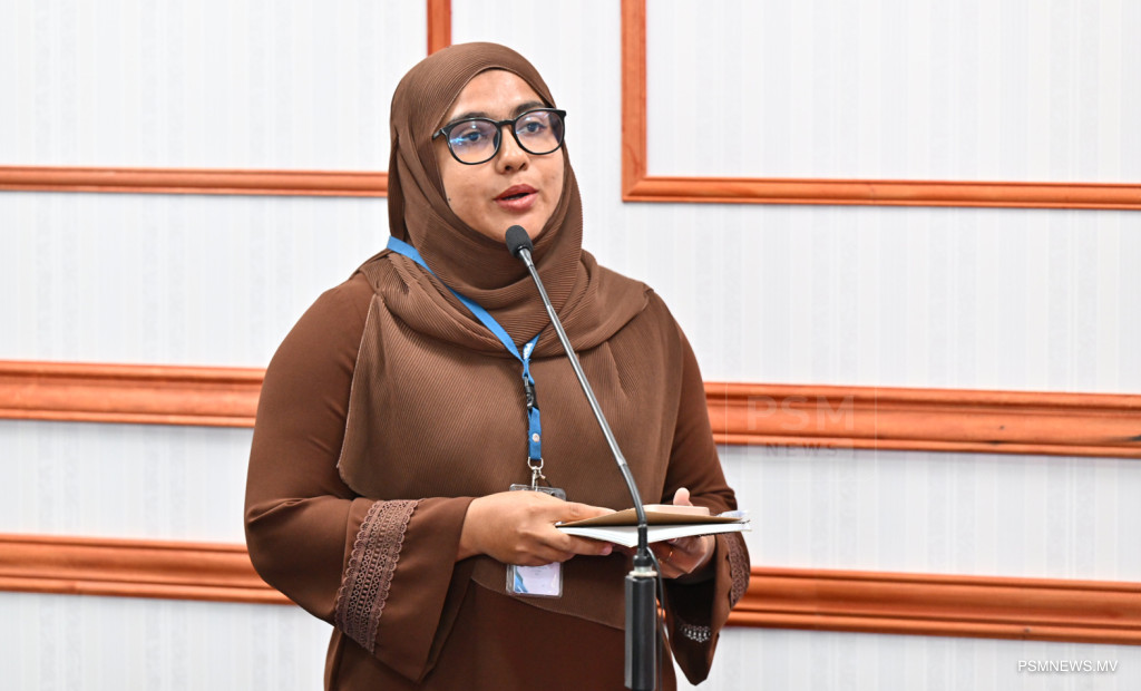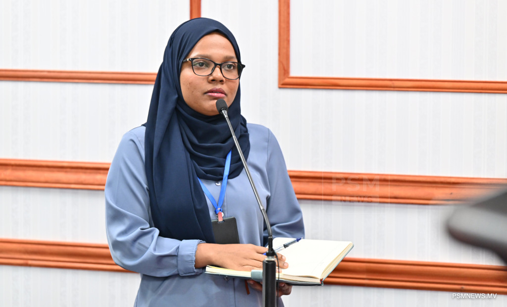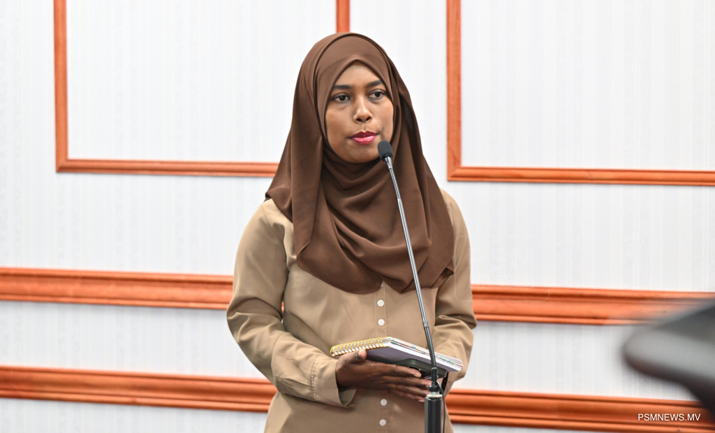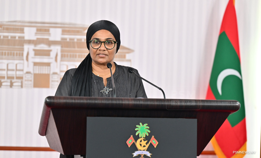 ރައީސުލްޖުމްހޫރިއްޔާގެ އޮފީހުގައި ބޭއްވި ނޫސްވެރިންގެ ބައްދަލުވުމުގައި ދަނޑުވެރިކަމާއި ދިރޭތަކެއްޗާ ބެހޭ ވަޒީރު ޑރ. މަރްޔަމް މާރިޔާ ވާހަކަފުޅު ދައްކަވަނީ / ފޮޓޯ:: ރައީސް އޮފީސް