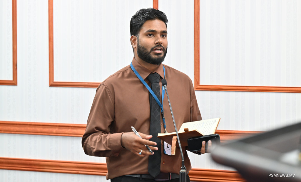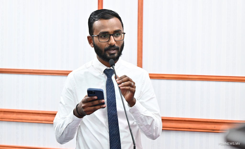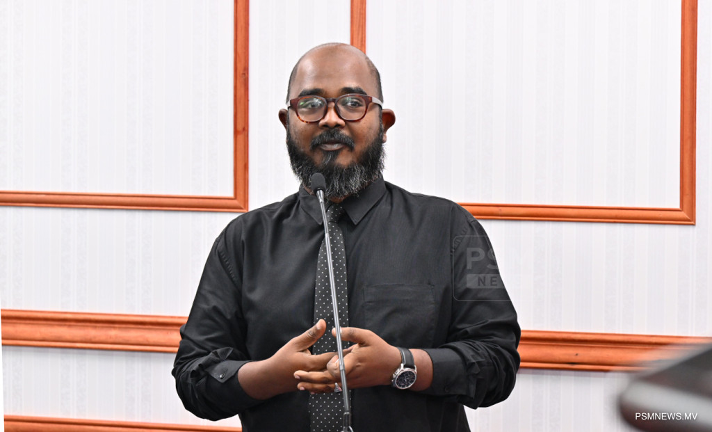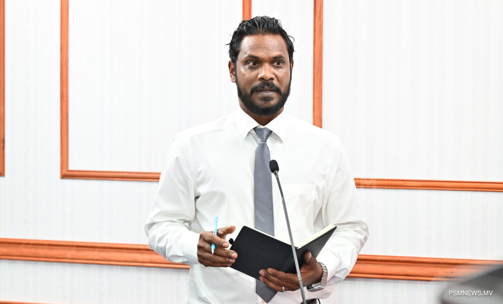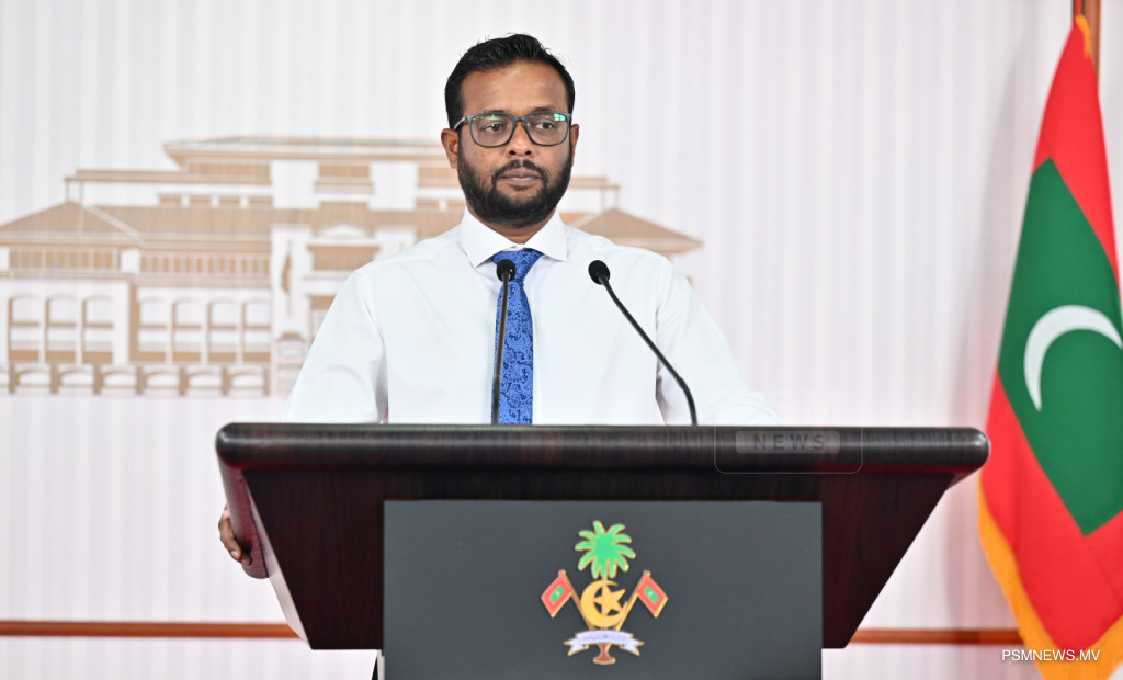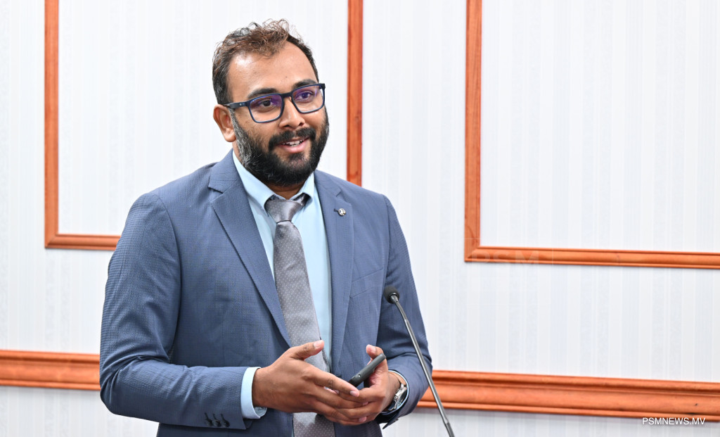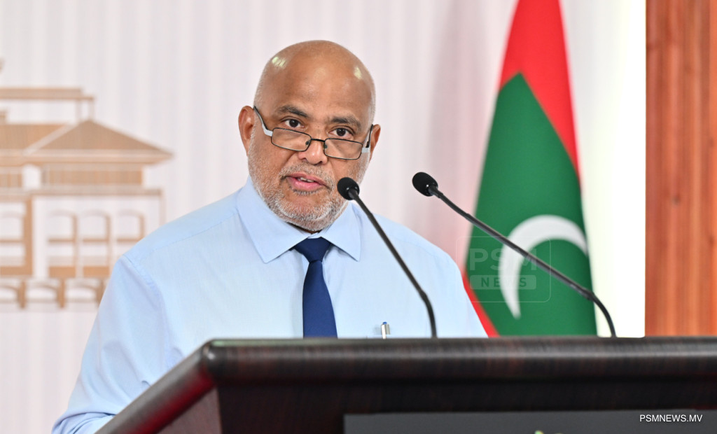 ރައީސުލްޖުމްހޫރިއްޔާގެ އޮފީހުގައި ބޭއްވި ނޫސްވެރިންގެ ބައްދަލުވުމުގައި މަސްވެރިކަމާއި ކަނޑުގެ ވަޞީލަތްތަކާ ބެހޭ ވަޒީރު އަޙްމަދު ޝިޔާމް ވާހަކަފުޅު ދައްކަވަނީ / ފޮޓޯ:: ރައީސް އޮފީސް