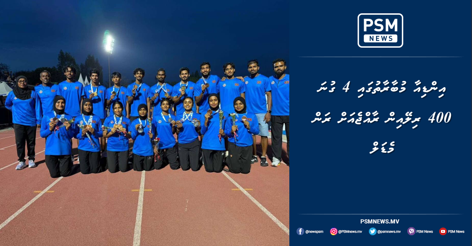 އިންޑިއާގައި ބޭއްވި ފުރަތަމަ އިންވިޓޭޝަނަލް ރިލޭ އަދި 3 ވަނަ ނޭޝަނަލް އޯޕަން ޗެމްޕިއަންޝިޕްގެ ފިރިހެނުންގެ 4 ގުނަ 400 މީޓަރު ރިލޭގައި ވާދަކުރި ރާއްޖޭގެ އެތުލެޓިކްސް ޓީމުން ރަން މެޑަލް ހޯދައިފިއެވެ.