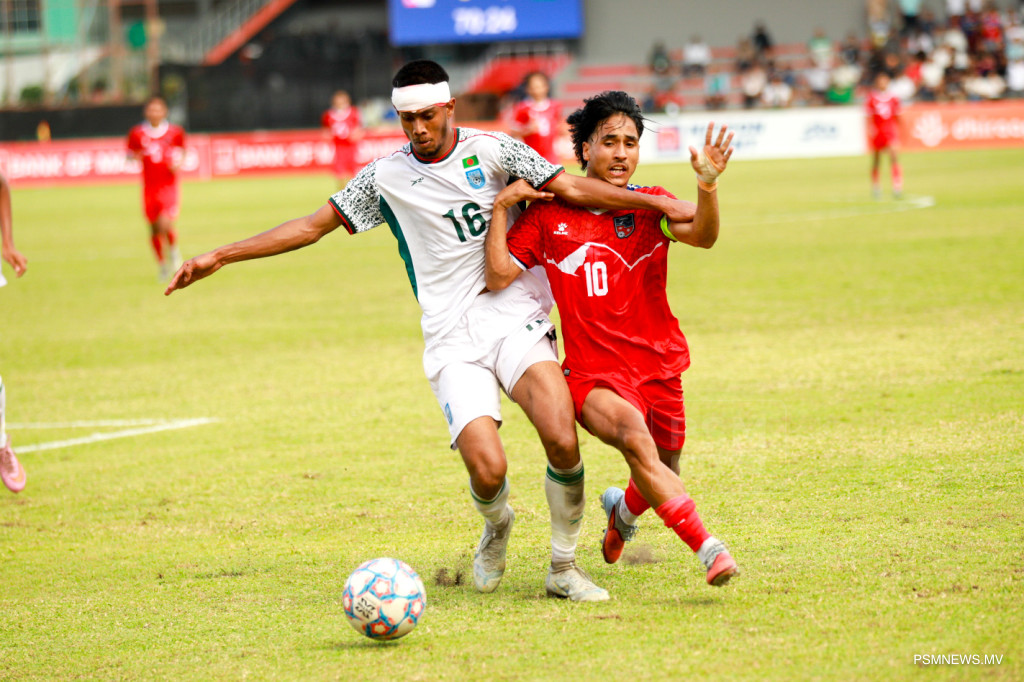 އަވަސް ފުޓުބޯޅައެއް ފެނިގެންދިޔަ މިމެޗުގައި ފުރަތަމަ ހާފް އެއްކޮށް ކަހަލަގޮތަކަށް ބަނގްލަދޭޝްގެ ޒުވާން ޓީމުން ޑޮމިނޭޓްކޮށްފަވާއިރު، ނޭޕާލުން ގޯލެއް ޖެހުމަށް ކުރި މަސައްކަތްވަނީ ނާކާމިޔާބުވެފައެވެ.