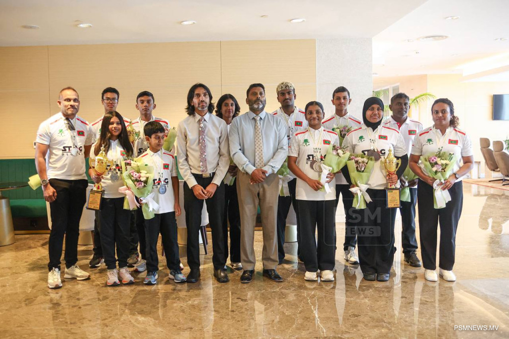އިންޑިއާގެ ޝިމްލާގައި އޭޕްރީލް 8-11 އަށް ބޭއްވި މި މުބާރާތުން 7 މެޑަލް ހޯދައިގެން ރާއްޖެ އައި ޓީމަށް އެއާޕޯޓުން މަރުހަބާ ދެންނެވީ ކުޅިވަރާއި ހަށިހެޔޮކަމާއި ބެހޭ ވަޒީރު ޢަބްދުالله ރާފިޢުއެވެ.