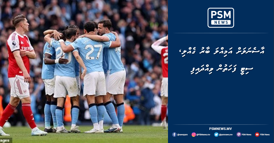 އިނގިރޭސި ޕްރެމިއާ ލީގުގައި މިރޭ އެއްވަނާގައިވާ އާސެނަލް 2-1އިން ބަލިކޮށް މެންޗެސްޓާ ސިޓީ އިނގިރޭސި ޕްރެމިއާ ލީގު ކާމިޔާބު ކުރުމާ ގާތަށް ޖެހިލައިފި އެވެ.